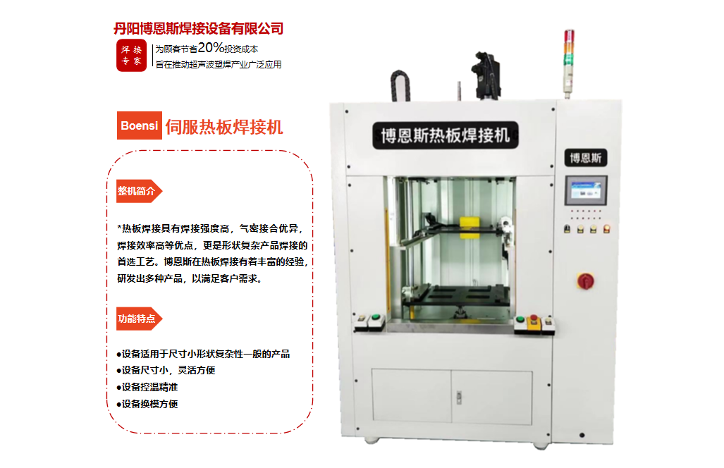 丹陽(yáng)博恩斯焊接設(shè)備有限公司是塑料焊接領(lǐng)域集研發(fā)設(shè)計(jì)、生產(chǎn)制造、銷售服務(wù)為一體的企業(yè)。公司自成立以來堅(jiān)持“以人為本”的理念,組織了一支強(qiáng)大的技術(shù)研發(fā)團(tuán)隊(duì),攜多年來積累的豐富經(jīng)驗(yàn),并結(jié)合國(guó)際先進(jìn)塑料焊接技術(shù),根據(jù)市場(chǎng)需要,不斷開發(fā)具有核心競(jìng)爭(zhēng)力的新產(chǎn)品。公司具有很強(qiáng)的非標(biāo)機(jī)械研發(fā)、設(shè)計(jì)、生產(chǎn)能力,可為廣大客戶定制各類專用機(jī)械設(shè)備。公司設(shè)計(jì)生產(chǎn)的塑料焊接設(shè)備已廣泛應(yīng)用于汽車、電子、家電、醫(yī)療器械、無紡布...